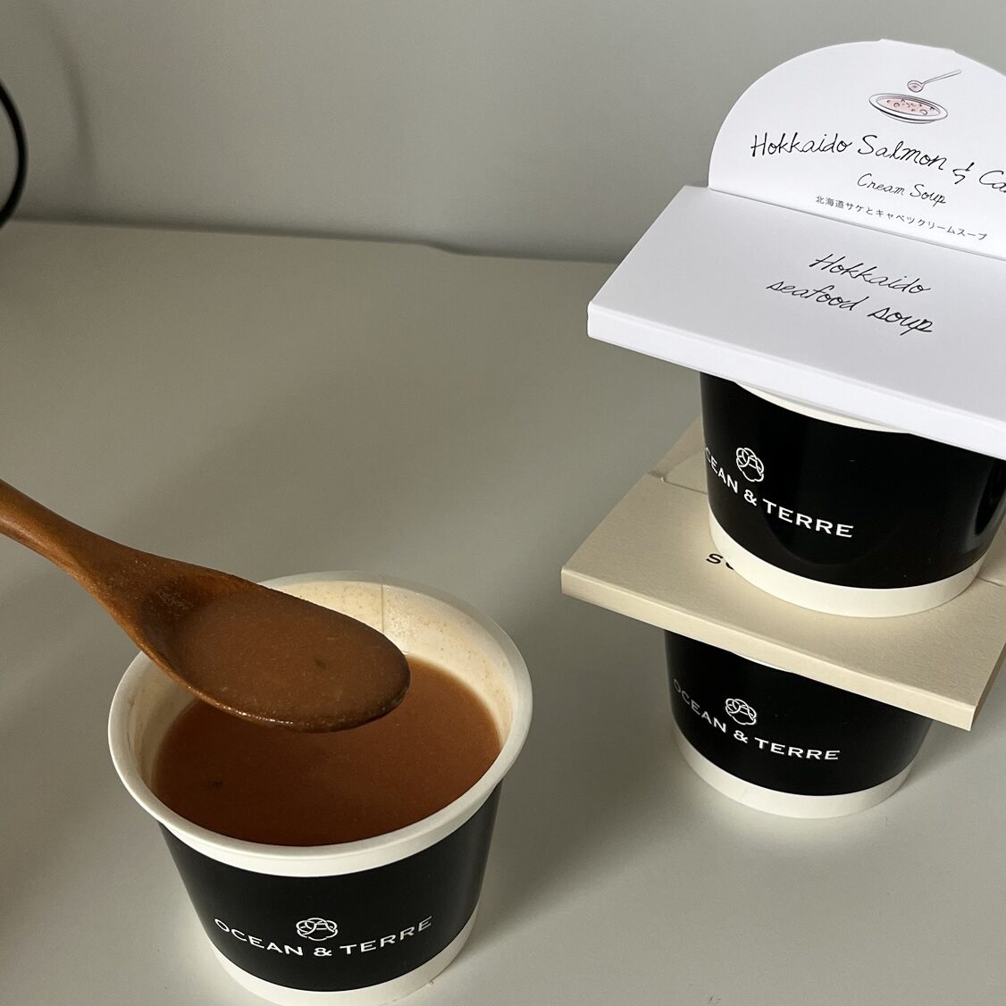 モノトーンのパケがおしゃれな粉末タイプのカップスープ