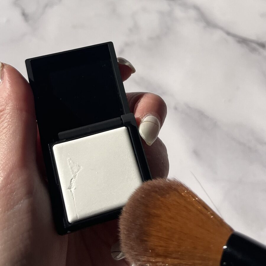 パウダーは真っ白くて白いなって思うかもだけど、肌に乗せると無色になるよ。