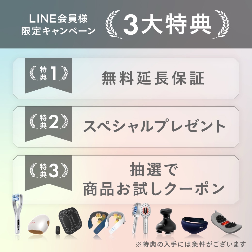 NIPLUX(ニップラックス)は肩こりやむくみを解消する器具や美顔器など健康・美容家電なども取り扱うブランド。