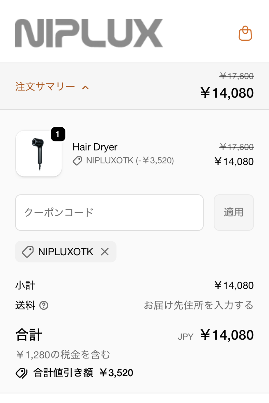 クーポンコード : NIPLUXOTK