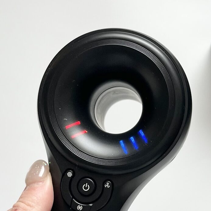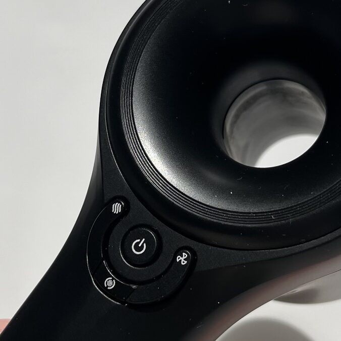 中心下部のボタンで温風、冷風を瞬時に切り替えることもできるよ!